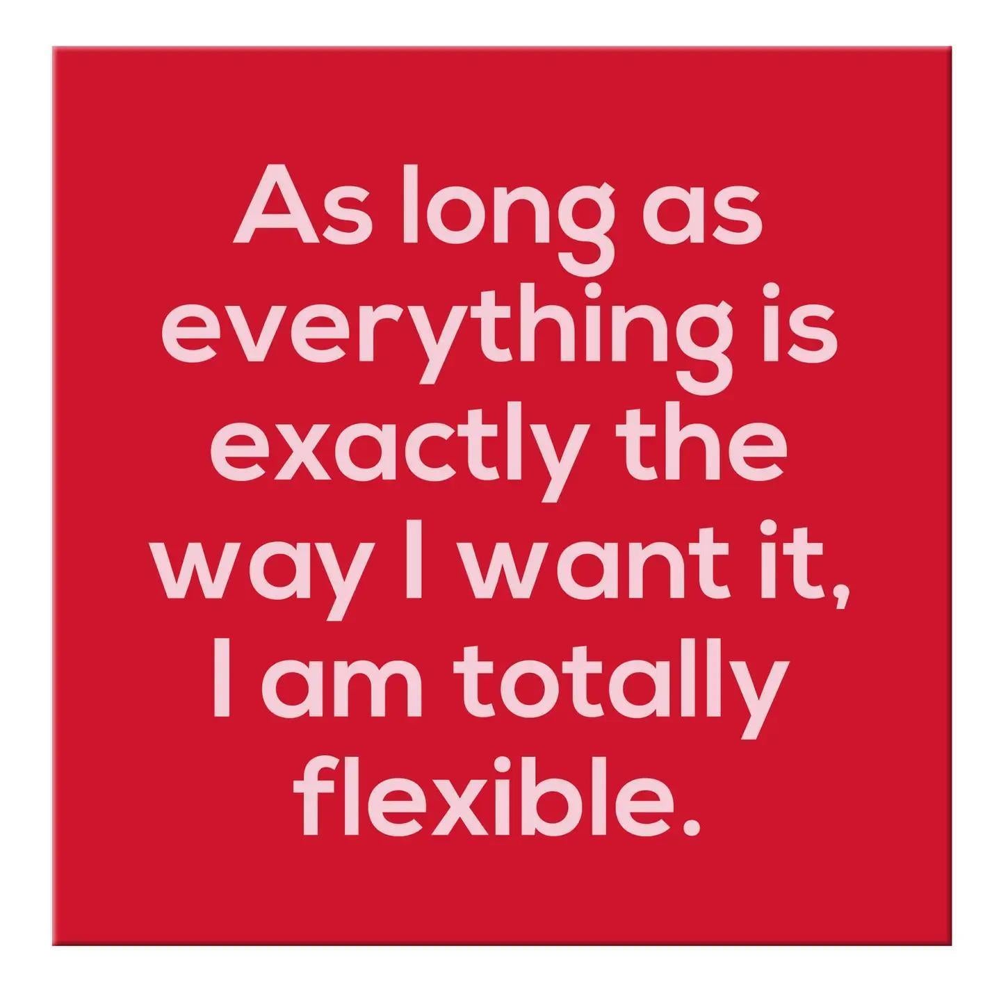 Stay organized and get creative with our NEW! As long as everything is exactly the way I want it I am totally flexible magnet. This quirky refrigerator magnet adds a touch of fun to any magnetic surface. Keep notes, photos, and to-do lists in one place with this playful and unconventional magnet.